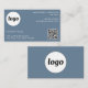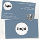 Simple Logo and Text QR Code Dusty Blue Gray Business Card