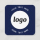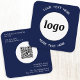 Simple Logo and Text QR Code Navy Blue Square Business Card