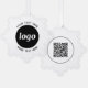 Simple minimalist logo and custom text with QR code to promote your business in the winter Holidays. Replace the logo, QR code and text with your own to customize, and change the background and text color to match your own branding.