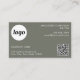 Simple minimalist logo and custom text with QR code on a sage green background for your business. Replace the logo, QR code and text with your own to customize, and change the background color to match your own branding.