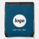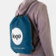 Simple Logo Text Promotional Business Teal Green Drawstring Bag