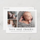 Simple Love and Thanks 3 Photo Baby Thank You Postcard