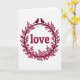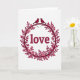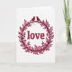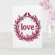 This greeting card shows the word “love” centered in deep crimson, set in a classic serif letter style on a plain white background. A round wreath wraps around the word, made of reddish-brown branches with soft pink leaves and a few small five-petaled blossoms. At the top of the wreath, two small crimson birds sit facing each other, as if sharing a quiet moment together. Their simple shapes and close pose make the scene feel tender and close, like a private sign of caring. The white space around the design keeps your eyes on the wreath, the birds, and that one clear word in the middle. It feels meaningful to give because it says what you mean without needing a lot of extra words 🥰. Whether it’s for a partner or a close friend, it gently points to connection, kindness, and staying close ❤️. Hope it helps you share your Valentine’s Day feelings in a simple, heartfelt way.