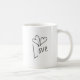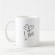 Simple handwritten word, "Love" with hearts in black and white. Customizable background color.