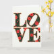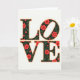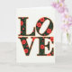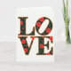 This card shows the word “LOVE” in big capital letters, stacked with “LO” on top and “VE” below on a white background. Each letter has a soft coral outline that makes it look slightly raised from the page. Inside the letters, there’s a floral pattern set on a deep black fill. You’ll see large red five-petal flowers with darker centers, along with smaller blossoms and green leaves tucked between them. The contrast of red and green against the black makes the design feel cozy and romantic without needing anything else. The “LOVE” text is the main focus, and it’s easy to read thanks to the strong letter shapes and the coral edging. It’s a meaningful card to give because the flowers add a gentle, caring feel, like you’re saying “I’m thinking of you” in a simple, honest way 🥰❤️. Hope it helps you share Valentine’s Day feelings with someone you care about.
