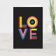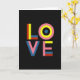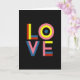 This greeting card features the word “LOVE” centered on a deep black background, so the colors stand out right away ❤️. The letters are made from simple shapes and bright color bands, giving the whole design a modern, graphic look. The “L” is built from red and blue bars with a strong yellow upright, like pieces fitted together. The “O” is a set of rings—soft pink, bright yellow, and a calm blue center—almost like a target or an eye. The “V” layers solid blue over a gentle pink, which makes it feel slightly raised even though it’s flat on the page. The “E” echoes the “L,” using pink, yellow, blue, and red sections to finish the word. The text “LOVE” is in large, thick letter shapes right in the middle, and it feels meaningful because it says what you mean without needing extra words 🥰. Hope it helps you share Valentine’s Day sentiments with someone you care about.