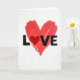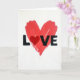 This greeting card shows a large red heart painted with visible brush marks on a white background. Across the heart, the word “LOVE” is written in solid black letters that look slightly uneven at the edges, like they were painted by hand. The “O” is replaced with a smaller red heart, making the message feel extra direct and sweet. The big heart looks full and energetic, while the little heart in the middle feels like a simple, tender detail. With just red, black, and white, the design stays focused on the feeling instead of extra details. It’s an easy card to give when you want to say what you mean without overthinking it 🥰. Whether it’s for a partner or a close friend, it quietly says “you matter to me” ❤️.