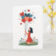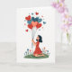 This design shows a young woman kneeling on a small green patch of ground, looking up with a calm, hopeful expression. She’s holding a bunch of heart-shaped balloons that float above her into a wide white background. The hearts are mostly red and coral with a few teal ones mixed in, and some have small polka dots. Her dress is red with polka dots too, tying her to the balloons in a sweet, simple way. A few tiny hearts and dots are scattered around the balloons, like little wishes drifting upward. There isn’t any text on the front, so the picture does all the talking and leaves room for your own words. It feels meaningful to give because it quietly says, “I’m thinking of you,” and “I hope good things find you,” whether it’s for romance or close friendship 🥰❤️. Wishing you an easy way to share Valentine’s Day sentiments with someone you care about.