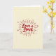 This design shows the words “Love is Love” centered on a creamy yellow background in deep red lettering that looks like smooth, flowing handwriting. A faint shadow behind the letters gives the message a little depth without distracting from it. Behind the text, a red sunburst spreads outward with short lines and small dots, like a gentle burst of light. Scattered around the rays are tiny red hearts, some filled in and some outlined, placed like little sprinkles across the card. The overall look feels warm and welcoming, with the simple colors keeping the focus on the message. It’s a meaningful card to give because it supports love in every form and says it plainly, without needing extra words 🥰. Share it with someone you care about to pass along a little Valentine’s Day love ❤️ and kind feelings.