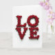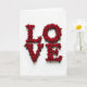 This design shows the word “LOVE” spelled out using tightly packed red roses on a bright white background. Each letter is shaped with rounded curves, and you can see layered petals that make the roses look full and soft. Small green leaves peek out here and there between the blooms, adding a natural touch and breaking up the red. The lighting is even and gentle, so the flowers look clear and the shadows stay soft. The text “LOVE” sits centered on the front, and it reads like floral lettering rather than ink on paper. It feels meaningful because it says what you might struggle to say out loud, in a simple and romantic way ❤️. Give it to a partner or a close friend when you want your care to feel obvious and sincere 🥰, and enjoy sharing Valentine’s Day sentiments.