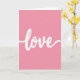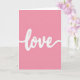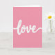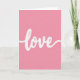 This greeting card features the word “love” in white, flowing cursive lettering across a smooth bubblegum-pink background. The letters are rounded and gently curved, giving the word a soft, caring feel. “Love” sits across the middle of the card, placed just a little higher than center so it stands out right away. There aren’t any characters or extra objects—just the simple word and the solid pink setting, which keeps your focus on what you want to say. The bright pink and white contrast makes the message easy to read and hard to miss. It feels meaningful to give because it says something honest without needing a lot of extra explanation 🥰. The white lettering looks like a neat cursive style, and it stretches in one line across the middle area of the front. Share it to send a little Valentine’s Day love and kindness ❤️.