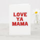 This card keeps things simple, with the words “LOVE YA MAMA” as the main focus. The message sits centered on a plain white background, so your eyes go straight to it. The letters are all uppercase in a straightforward sans‑serif style, colored a strong red that feels loving and direct ❤️. Each letter has a thin white outline around it, almost like a sticker edge that helps it stand out. The red ink look is intentionally worn, with tiny white specks and slightly rough edges that make it feel real and human. There aren’t any characters or extra objects, which makes the message feel even more honest and close to the heart. It’s a meaningful card to give because it says what you might not say out loud every day, in a way that feels warm and steady 🥰. Hope it helps you share your Valentine’s Day feelings with someone you love.