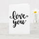 This card keeps things simple with the words “love you” placed right in the center. The letters are black and have a flowing, hand-lettered look, with long curves that stretch from the first “l” and trail off near the end. The background is plain white, so the message stands out right away without anything else around it. If you look closely, the black strokes show a slight grain, like they were made with a brush or marker, which makes it feel more human and real. The strong black-and-white contrast gives it a calm, direct feeling that’s easy to connect with. It’s meaningful because it says what many people feel but don’t always say out loud, and it does it in a gentle, straightforward way 🥰. Whether it’s for a partner, a close friend, or someone you miss, this card helps you share love without needing a long note ❤️. Hope it helps you share Valentine’s Day feelings in a simple, caring way.