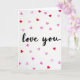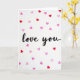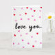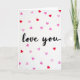 This greeting card features a simple white front with the words “love you” written large in the center in black, flowing handwritten lettering. Around the message, tiny heart confetti is sprinkled across the card like it was gently tossed by hand. The hearts come in classic red and a mix of pink shades, from soft light pink to deeper hot pink, which makes the white space feel warm and full. There are no characters or scenery—just the message and the hearts—so your eyes go straight to what you want to say. The overall look feels calm and sweet, like a quiet moment where you finally say the important thing. It’s a meaningful card to give because it keeps the focus on affection without needing a long note. Add your own words inside, and the simple “love you” on the front does the first part for you 🥰❤️. Hope it helps you share Valentine’s Day sentiments with someone you care about.