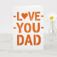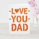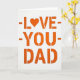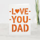 This card features a bright orange message on a plain white background that feels simple and direct. The text reads “I ❤️ YOU DAD” in all caps, with a stencil-like letter style that has small breaks in each letter. “I” sits on the top line, the heart and “YOU” are centered on the middle line, and “DAD” is placed on the bottom line, with short orange dashes near the words like little separators. The heart symbol is orange too, standing in for the word “love,” and it makes the message feel instantly warm ❤️. If you look closely, the orange ink has slight texture and tiny uneven spots, which makes it feel more human and real. The strong orange against the white background keeps the focus on what you’re trying to say, without distractions. It’s a meaningful card to give when you want your dad to feel appreciated and cared for, whether it’s romantic love in the family sense or simple closeness 🥰. Hope it helps you share your Valentine’s Day feelings in a kind, genuine way.