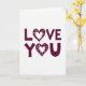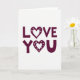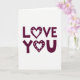 This card keeps things simple with the words “LOVE YOU” centered on a plain white background. The letters are a deep burgundy, and they’re thick and rounded, giving the message a friendly, easy-to-read look. The text is set on two lines, with “LOVE” on top and “YOU” right below it. In both words, the “O” is replaced by a burgundy heart, so the message feels extra loving ❤️. Each heart has a thin white outline inside it, plus a ring of tiny white dots around the edge that looks like a soft little sparkle. The strong contrast between the burgundy and white makes the words stand out right away, without needing anything else. It feels meaningful because it says exactly what you want to say, in a way that’s warm and direct 🥰.
