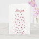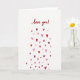 This greeting card features the words “love you!” across the top in red, flowing cursive-style lettering that looks slightly uneven in a sweet, human way. Below the text, small hearts float upward from the bottom edge like a gentle trail. The hearts come in different shades—deep red, rosy pink, and darker fuchsia—so your eye naturally follows them up toward the message. Each heart has a simple, crayon-like texture that makes the design feel sincere rather than perfect. The background is plain white, which keeps everything focused on the hearts and the loving words. It feels meaningful to give because it says what you mean without a lot of extra fuss, whether it’s for a partner or someone you care about deeply 🥰. There’s plenty of open space, so your own note inside can feel just as important as the front design ❤️. Hope it helps you share your Valentine’s Day feelings in a warm, easy way.