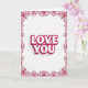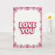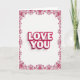 This greeting card puts “LOVE YOU” right in the center in large capital letters that look slightly raised. The letters are filled in white, outlined with a strong pinkish-red, and finished with a small shadow that helps them stand out. Around the edges, a continuous border of red flower line drawings frames the message like a gentle hug. The flowers have flowing petals and curling stems, giving the whole card a soft, romantic feel without adding extra clutter. The background stays plain white, so the red details and the words are the first thing you notice. The text is centered and easy to read, which makes the message feel direct and honest ❤️. It’s a meaningful card to give because it says what you feel in a simple way, while the floral border adds a caring touch 🥰. Hope it helps you share your Valentine’s Day sentiments with someone special.
