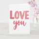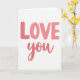 This card keeps things simple with the words “LOVE you” as the whole focus. “LOVE” sits across the top in large, all-caps letters that look like thick paint strokes with slightly rough edges. Under it, the smaller word “you” is written in a smooth, connected cursive style that feels soft and close. Both words are in a coral pink color that gives the message a warm, romantic feel ❤️. The background is plain white, so the lettering stands out right away and nothing pulls your attention away from the message. The mix of strong “LOVE” and gentle “you” makes it feel like a big feeling followed by a quiet, personal note. It’s a meaningful card to give when you want to say something direct, affectionate, and true 🥰.