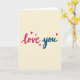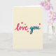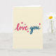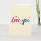 This card shows the words “love you” centered on a soft, creamy beige background. The text is written in smooth, flowing cursive-style lettering that feels like it was drawn in one easy motion. “Love” is in bright fuchsia pink, and it stands out right away with a warm, romantic feel ❤️. “You” sits right beside it in a deep teal, which adds a calm, steady touch that balances the pink. Small solid fuchsia hearts are scattered around the words, like little notes of affection floating nearby 🥰. With no other objects or scenery, the simple layout keeps your focus on the message and how it feels to say it out loud. It’s meaningful to give because it’s direct, kind, and works for romance or close friendship without needing a long note. Hope it helps you share your Valentine’s Day sentiments.