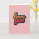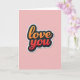 This card features the words “love you” centered on a soft pastel pink background. The lettering is smooth and rounded, like a casual handwritten note, and it’s the main thing you notice right away. “Love” fades from orange into yellow, while “you” shifts from bright red into a deeper red, giving the message a warm, romantic feel ❤️. Each letter has a dark charcoal outline, plus a thin white edge that helps the words stand out. There’s also a gentle shadow behind the text, making it look slightly raised, almost like a sticker placed on the front. With no characters or extra objects, the simple focus on the message makes it feel honest and easy to give 🥰. It’s a sweet way to say what you mean without needing a long note, perfect for sharing Valentine’s Day sentiments.