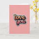 This design shows the words “love you” centered on the card in smooth, flowing lettering. The letters fade from warm orange at the top into soft blush pink at the bottom, giving the message a gentle, cozy look 🥰. A deep black shadow sits behind the letters, making them feel raised and easy to notice at a glance. The words sit inside a rounded badge shape, outlined with a thin silver-gray border that looks slightly metallic. A softer shadow under the badge makes it seem like it’s floating above the background. The background is a solid pastel coral-pink, which keeps the focus on the message and adds a calm, romantic feel ❤️. It’s meaningful because it says what you might not always say out loud, in a simple way that still feels special. Hope it helps you share Valentine’s Day feelings with someone you care about.