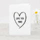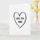 This card shows a white background with a large black heart outline drawn with slightly uneven lines, like it was made with a marker. Inside the heart, the words “LOVE YOU MORE” sit centered and stacked in simple, all-cap letters. The text is black and looks lightly imperfect, matching the heart’s easy, human feel. With only black on white, your eyes go straight to the message and the shape holding it. It feels like a small note you’d leave for someone you care about, honest and direct. Giving it says “I’m here, and I mean this,” whether it’s for a partner or a close friend 🥰. It’s meaningful because it doesn’t try too hard—just a heart and a few words that say a lot ❤️. Hope it helps you share Valentine’s Day sentiments with someone special.