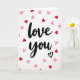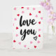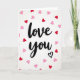 This card features the words “love you” in black, flowing calligraphy centered on a bright white background. Around the message, small heart shapes are scattered like confetti, mostly in ruby red and soft baby pink. The hearts look like paper cutouts, with faint shadows that make them feel slightly raised. Beneath the word “you,” there’s a simple outlined heart in black that finishes the message in a sweet, quiet way. The strong contrast between the black lettering and white space makes the words easy to read at a glance. It feels meaningful because it says what you want to say without overexplaining, and the little hearts add warmth without crowding the page 🥰. This is a lovely choice for a partner, close friend, or anyone you care about, especially when you want your note to feel sincere ❤️. Hope it helps you share your Valentine’s Day feelings in a simple, kind way.