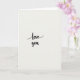 This greeting card keeps things simple with the words “love you” as the whole focus. The text is written in smooth, brush-like black lettering that looks slightly thicker in some strokes and thinner in others. It sits with lots of open space around it on a soft off-white background, so your eyes go straight to the message. The letters have gentle curves and natural little changes in the ink, like it was written by a real person. There are no other objects or characters, which makes the card feel quiet and intimate 🥰. Giving it can feel meaningful because it says what you want to say without adding anything extra. The phrase “love you” is placed near the center of the front, easy to see and easy to take in ❤️. Hope it helps you share your Valentine’s Day feelings in a simple, caring way.