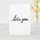 This card keeps things simple, with the words “love you” centered on a plain white background. The lettering is black and flowing, like neat handwriting, so it feels close and sincere. In the word “love,” a bright red heart takes the place of the “o,” drawing your eye right away ❤️. That small heart adds a warm touch without needing anything else around it. With so much open white space, the message feels calm and easy to take in. It’s a meaningful choice for a partner, a close friend, or anyone you want to reassure with a few honest words 🥰. The design says a lot without trying too hard, making it feel natural to give. Hope it helps you share your Valentine’s Day sentiments.