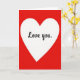 This greeting card features a large white heart centered on a deep red background, creating a simple, romantic contrast ❤️. Inside the heart, the words “Love you.” appear in black, flowing cursive-style lettering, placed right in the middle where your eye naturally lands. The heart’s edges look smooth and soft, which makes the message feel gentle and sincere. The red area behind it has a faint vertical texture, like subtle ridges, so the background doesn’t look flat. There aren’t any extra characters or objects, just the heart and the message, which keeps the focus on what you want to say. It feels meaningful because it’s direct and honest, making it easy to give to a partner or someone you care about 🥰. It’s the kind of card that says a lot without needing many words, perfect for sharing Valentine’s Day.