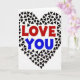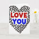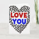 This greeting card shows a large heart made from many tiny, dark, rounded triangles arranged like a mosaic on a white background. The triangles create a textured, slightly pixel-like look, with uneven little shifts that make the heart feel human and real. Inside the heart, the words “LOVE YOU” sit at the center and are easy to read. “LOVE” is in a strong red, while “YOU” is in a clear blue, and both are in simple, all-caps lettering. The limited colors—red, blue, black, and white—keep the focus on the message and the heart shape. It feels meaningful because it says what you want to say without extra fuss, but still looks thoughtful and put-together 🥰.