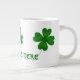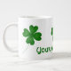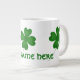A jumbo mug with 3 pretty shamrocks on it and space for your name. The lettering can also be removed if desired.