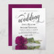This simple yet beautiful budget wedding invitation features an elegant design with a single long stemmed cassis purple, magenta, or berry colored rose and elegant script calligraphy. With a low affordable price, this invite is the perfect solution for elegance and grace without breaking the bank.