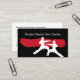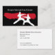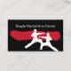Modern martial arts business card template including a red graphic element and two martial arts figures on the front with your company info on the flip side. Designed for a martial arts instructor, classes, or self defense course.