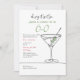 A simplistic invitation featuring a martini with two olives. Shown as a surprise birthday celebration, it's perfect as a cocktail party invitation too. The card is easy to customize with your wording, font and font color. Not exactly what you're looking for? All our products can be custom designed to meet your needs at no extra charge. Simply contact us at askpixiprints@gmail.com. Coordinating products available at your request at no additional charge.