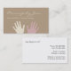 Massage therapy business cards in a modern look with massage hands, text templates you can personalize online, and includes two side printing. Designed for a masseuse, therapist, or spa.