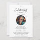 The card provides ample space for customization, allowing you to include essential details such as the name of your loved one, a cherished photo, life span, venue address, and RSVP information. The 'celebrating' script in calligraphy sets a tone of reverence and warmth.