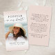 Keep the memory of a loved one close with this custom color personalized prayer card (shown in blush pink) featuring one treasured photo, the title FOREVER IN OUR HEARTS, name and dates and an editable heartfelt remembrance message. With its simple yet classic design and elegant script typography, it makes a meaningful keepsake to share at a funeral, memorial service or Celebration of Life and offers comfort and a lasting tribute for family and friends. Its small and portable size of 3.5x2" (wallet-sized) makes it convenient for loved ones to carry it with them as a reminder of your loved one’s life and spirit. Personalization makes each card unique.