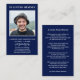 These navy blue custom personalized photo funeral cards are simple and are easily customized with a favorite photo of your loved one. On the front are the words "Your life was a blessing, your memory a treasure, you are loved beyond words, and missed beyond measure." The poem "A Letter From Heaven" by Alena Hakala Meadows is on the back. These beautiful funeral cards will help friends and loved ones through their bereavement and bring comfort and solace to those who receive them. Order our Simple Memorial Photo Funeral Cards today and honor the memory of your loved one in a meaningful and personalized way.