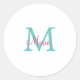 simple minimal add name monogram green pink blue t classic round sticker