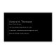 With its clean and minimalist design, this business card exudes professionalism and sophistication. The black background and simple layout make it easy to read and visually appealing, while the white text adds a touch of elegance. Perfect for networking events, client meetings, and office marketing, this business card is sure to leave a lasting impression.