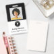 Simple and minimal black white and gray company employee badge name tag. Easily customize with employee photo, add company logo, QR code and barcode or delete. Personalize with your business address, tagline, additional information and website. Clean professional minimalist design.
