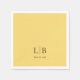 Simple and elegant with minimalist appeal, this paper napkin designed for weddings, showers, engagement parties, or anniversaries has a classic clean look in warm, sunny lemon drop yellow with the bride and groom's monogram initials and wedding date in black type face on white. This simple timeless design works beautifully for spring and summer weddings, coastal weddings, and weddings with a citrus or lemon grove theme.