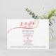This simple chic save the date of the wedding card has a minimalist red and white design with a modern white script on an elegant black background on front, and a lovely photo of the bride and groom to be, on the back side.
