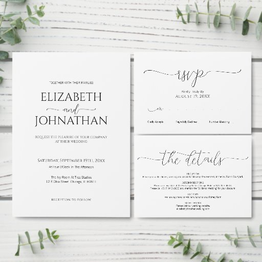Simple Minimal Script Black & White WeddingDesigned by Trista S