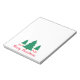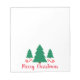 Cute and minimal personalized Christmas notepad design featuring three green Christmas trees on a white background. The text and the background are fully customizable.