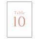 Simple and elegant with minimalist appeal, this lovely wedding table number card in white with citrus orange text has a clean modern look. No matter what color you use for your wedding flowers, bridesmaids or groomsman's attire, the simplicity of the table numbers allows your wedding color scheme to shine! NOTE: To create a table card for each table, you must create them one at a time. Edit the table number, i.e. table 1 and add to cart. Then edit the table number 2 and add to cart. Do this for each table that you will need until you have all the numbers created. Once you have them all added to cart, you can complete the checkout process.