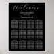 Simple minimalist black and white wedding seating chart. Let your wedding guests know where they are seated using this simple seating chart for up to 12 tables on black.