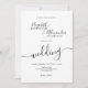 Plain white envelopes are included with paper invitations and will come to fit the invitation size you select. If you don’t need the envelopes, you may choose to not receive them by selecting the dropdown below "Envelopes" and choosing "None." If you’d like to have a design on your envelopes, you can browse all of these available envelopes to find the design that complements your Simple Minimalist Black White Script Chic Wedding Invitation.